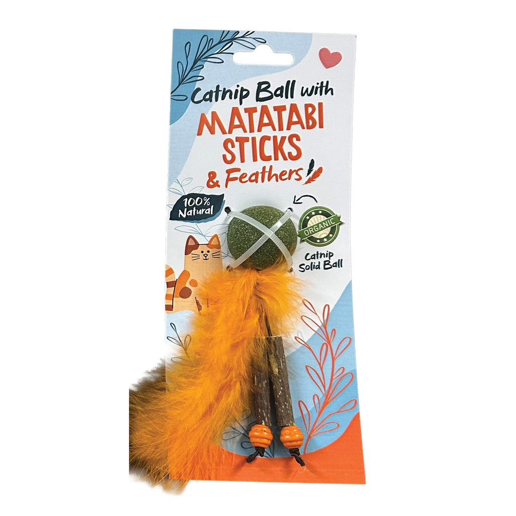 Treat your cat to the ultimate interactive toy that combines three irresistible elements - potent catnip, natural Matatabi wood, and enticing feathers. This innovative design features a solid catnip-filled ball connected to a Matatabi stick and premium feathers via a durable elastic cord. The combination creates an engaging play experience that satisfies your cat's natural hunting instincts while providing multiple sources of enrichment.