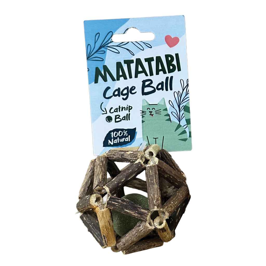 Discover our unique Matatabi Cage Ball, where natural Matatabi sticks form an outer cage encapsulating your choice of enrichment centre - either a solid compressed catnip ball or an engaging jingle bell ball. This innovative 7.5cm toy offers a multi-sensory experience as cats interact with both the outer Matatabi cage and the captivating inner core. The distinctive design provides hours of entertainment as cats roll, chase, and play with this cleverly crafted enrichment toy.